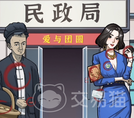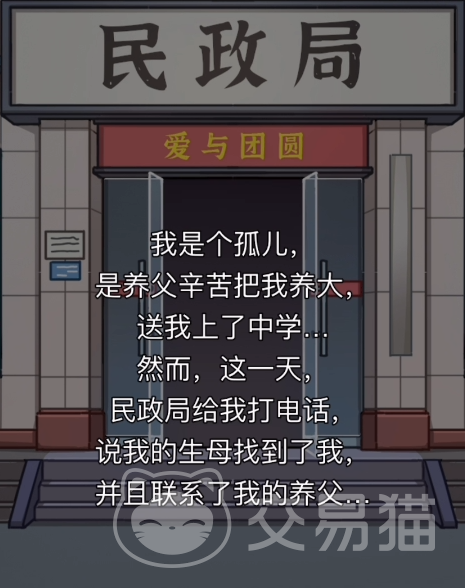 首先玩家们在进入关卡的时候,我们所处的场景是在民政局的门口,门口有两位成年人,这关的任务就是需要玩家们仔细分辨这两位,然后找出真正的有钱的父母是哪一位,之后本关便会真正开始。