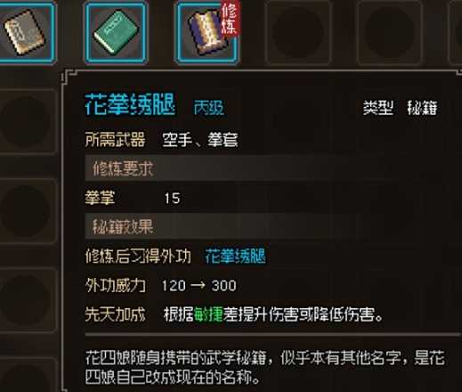 接着,玩家就需要带上木剑去找花四娘,在找到她之后会触发一个黑衣人的剧情,这个剧情中她会要求玩家加入她的小队,和她一起去打黑衣人。大家要做的就是加入进去然后去击败黑衣人,击败黑衣人之后该任务就会完成。完成之后,这个任务会给到玩家一套乙级的配饰和功法。有了这些功法和配饰之后,玩家就可以出村,前往下一个区域了。