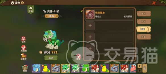 大家在该游戏当中是可以拥有自己的专属宠物的,得到宠物之后,大家可以看到宠物是有一个天赋技能的,宠物不一样的情况下它们的天赋技能也是不一样的,举例来说,老虎系列的宠物,基本上都是愤怒爆发的技能,同时有概率追击对手;如果是人龙系宠物,它们的天赋基本都是暴走,可以将暴击进行叠加。