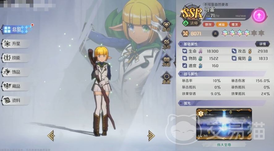 普攻则可以在打出单体伤害的同时一定几率对敌人施加效果抵抗降低,该效果持续两回合,对敌人算是一个比较具有威胁的减益手段,它和马雷的主动技还能形成一定联动,因为该技能是一个附带减速的单体法伤技能,有了效果抵抗的降低之后,敌人会更容易被减速。