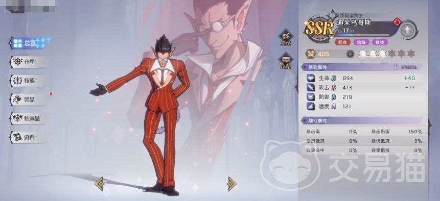 迪米乌哥斯:该角色的攻击达到了S级,速度也达到了A级,所以无论是先手爆发的能力和上限都非常可观,并且这个角色除了爆发以外,持续输出能力也是不错的,因为它的主动技能大多都可以为群体敌人施加灼烧效果。