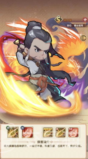 这个侠客在初始卡池中是可以直接抽取的,虽然不是在高级卡池中出现的一张S级别的卡,但是这个侠客上榜的原因也是非常的简单,非常适用于游戏中的大部分阵容搭配,自身的技能算是一个持续性伤害技能,在初始没有升级阶段,自身的【缎铃】技能就可以对三名敌人造成高额的伤害,而且还会给队伍中的队友释放一个怒气回复效果!