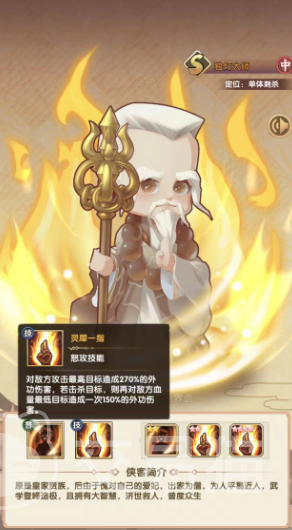 那么就可以很好的配合一些群体伤害的队友来进行一个击杀,其主要技能【灵犀一指】对敌人主要也是造成一个外功伤害,如果敌人的护甲效果没有外功防御的话,那么这个技能就会给敌人致命一击,对敌人造成伤害后,还可以继续追击一次外功伤害!不过这个侠客只出现在高级召唤卡池中!