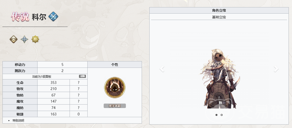 其次小编推荐的就是科尔他是一个属于瓦尔哈拉阵营的SR角色,职业是刺客。柯尔是一个非常出色的刺客型定位的角色,他可以对敌方造成致命的刺杀。他的主动技对敌方单体超高技能输出。被动技能都很出彩能够有效正价自身的爆率、爆伤,并在暴击时恢复自己一定比例的生命值。终极技可以对敌方的远程输出单位造成大量伤害,并使自己进入隐身状态,躲避所有攻击和控制效果。