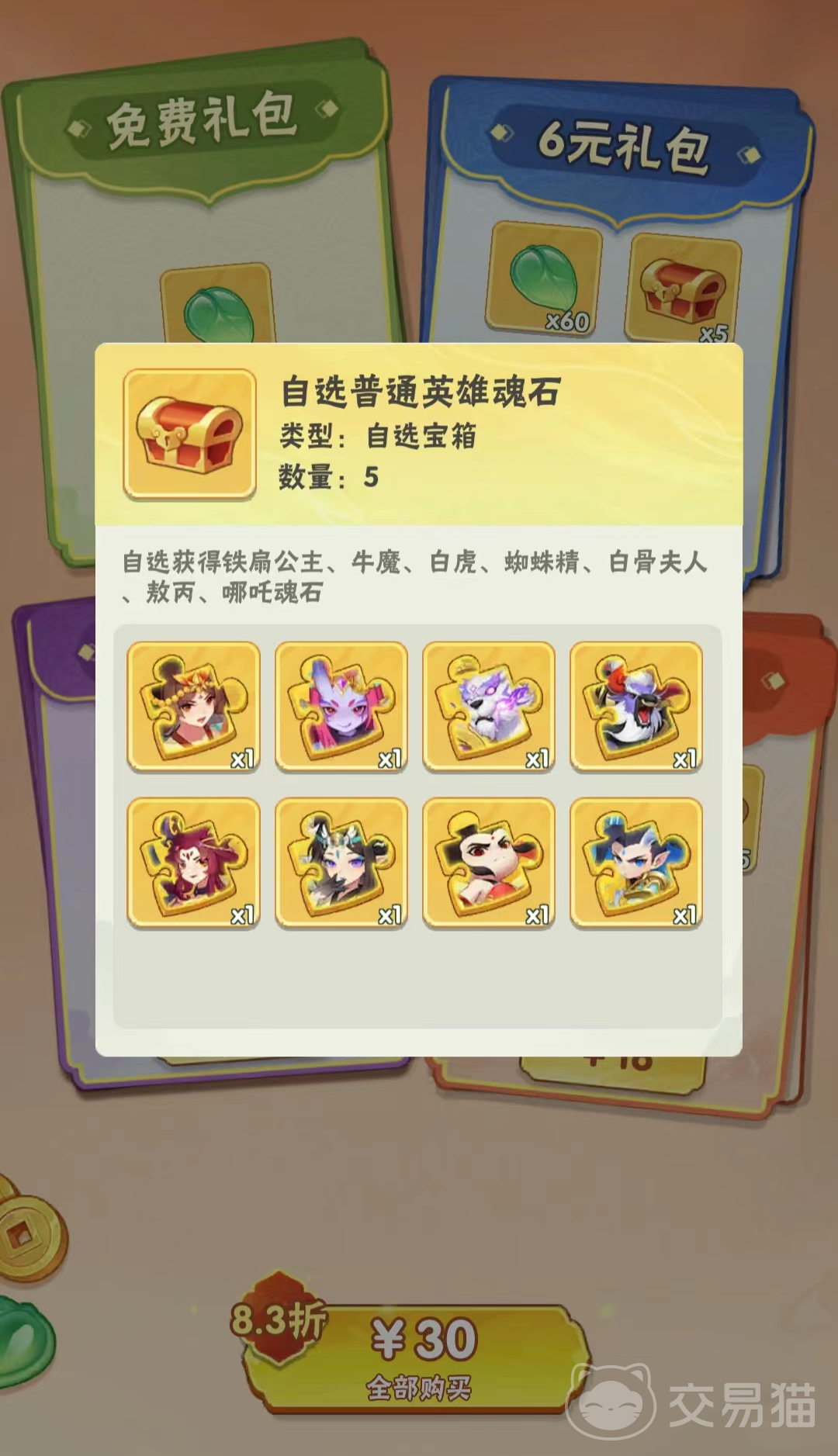 2、如果是小氪金玩家的话,那么可以每天花6元购买以下每日礼包,这样就能稳定得到6个敖丙的碎片,有助于玩家快速升星。