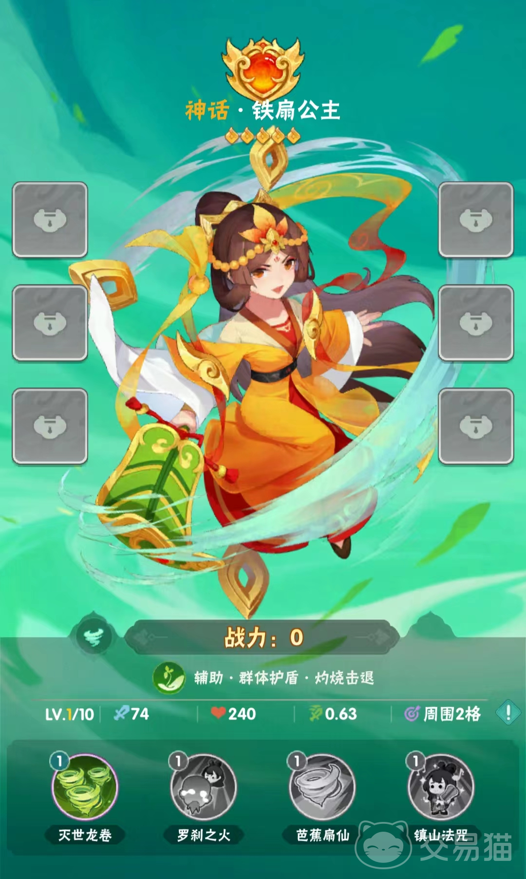 3、铁扇公主:这个是签到登录赠送的角色,作为增伤辅助的他来说,还是比较适合玩家去使用的,毕竟不需要太高的星星就能有较大的作用。