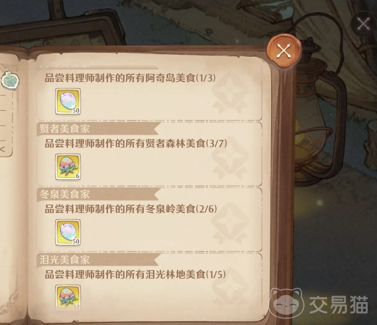 以上就是森之国度泪光美食家怎么完成的分享了。在成就中分为了4个板块,根据成就的提示来在游戏世界上进行探索就能达成了,获得相应的成就之后就能获得光珀奖励道具了,光珀能够在商城中购买很多重要的道具,比如说红卡。