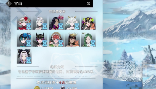 在宿命回响这款游戏当中,远征总共拥有三个不同的地图,分别是雪山、峡谷以及火山。在每一张地图当中,只能选用特定的角色进行挑战,而这些角色也是系统规定的,说白了就是角色不能自主选择,系统规定用哪个角色,那么玩家就必须使用哪一个。在可招募奏者界面当中,橙色是并没有获得,而蓝色是已经拥有的,如果实在是没有,那么系统可以借给玩家使用。正是因为如此,就算是了锁角色,也拥有着可以选阵容的余地。