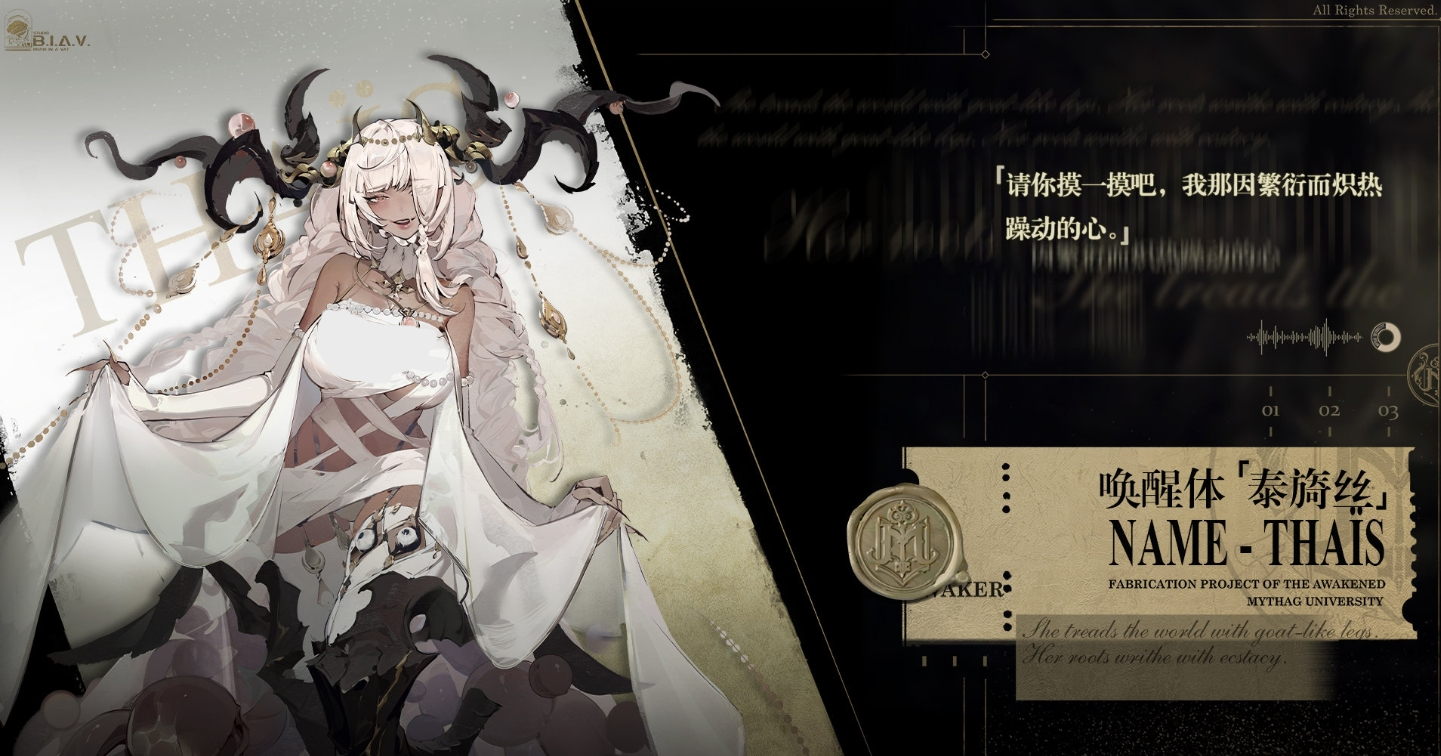 血肉界狱的ssr稀有度角色,玩家们可以称之为羊妈。作为以黑山羊为原型典故来捏它的角色,在一片翻腾的血肉当中所诞生,孕育着世界万物生灵。只能通过角色活动唤醒获得,稀有度较高。作为克系当中,非常著名的主神之一,关于她的传说有很多很多。有人称呼其为世界万物生命的起点,也有人称之为她是所有邪神的母亲。但无论如何,想要与她打好交道的话,都要万分小心,别被其欲望所吞噬。
