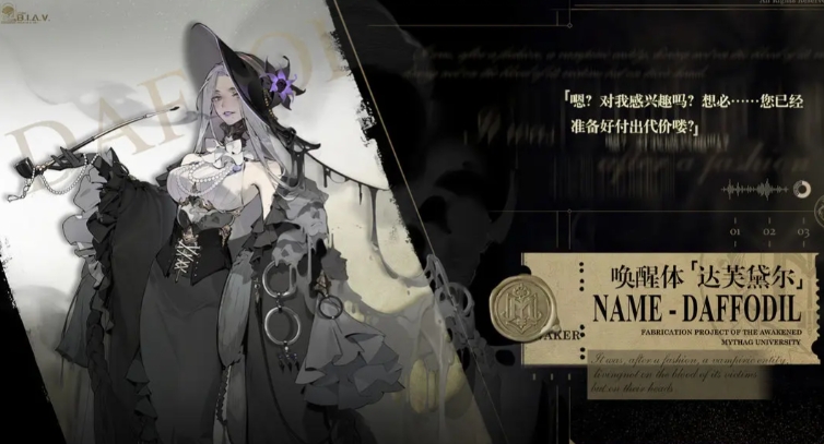 别称水仙夫人,是超维界域当中ssr稀有度角色,只能通过角色活动唤醒。华丽的暗色装饰下,那份从容的外表掩藏着不为人知的秘密。没有人知道她到底想着什么,也没人知道与她交流会付出多高的代价。