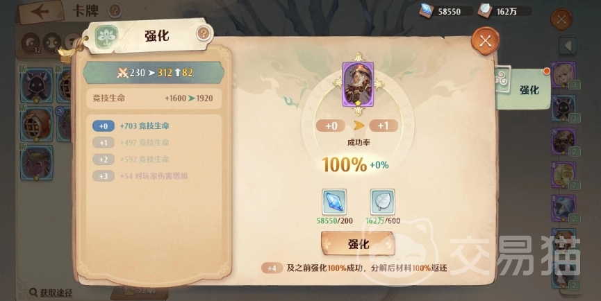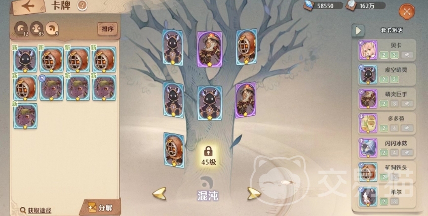 卡牌中金卡靠自己的运气获得不容易,不过还在活动多,而且金卡品种不多,紫卡和蓝卡能够通过大猫货运和竞技场的比赛来获得,同时探索碎片合成的宝箱中也能开出很多卡牌。