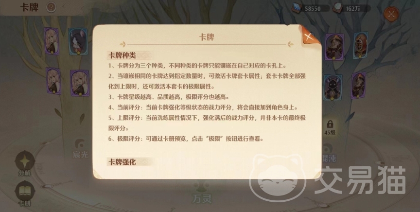 以上就是森之国度魔导卡牌推荐的内容分享了。卡牌这个板块的玩法内容不多,主要是看卡牌的等级和是否能组成套牌,套卡升星到最高级之后的属性加成会比单卡高很多,每个位面的孔位会随着等级的提升增加。