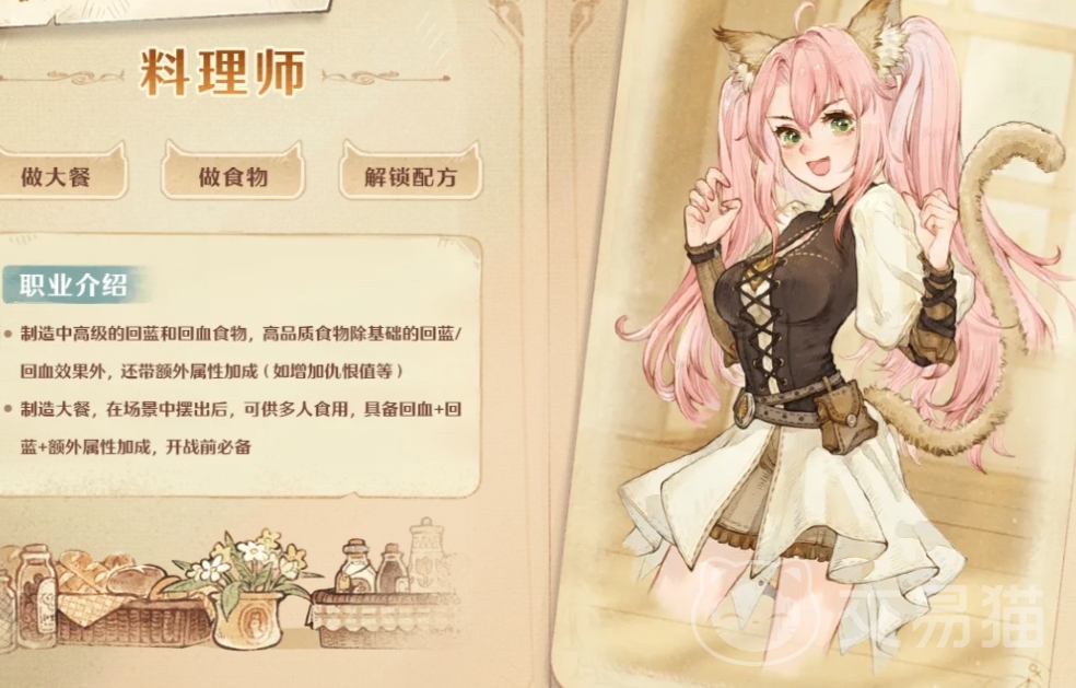 玩家们的等级达到了一定等级之后就开启了游戏中第二个身份,可以在炼金师、工匠和料理师中选择一个职业,在初期不能改变职业,到了后期在商城中花费巨额可以购买职业转换券来改变职业身份。美味食物就是料理师的职业产品了。