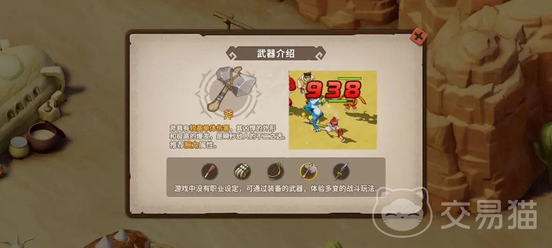 其实适合这类职业使用的武器类型还是蛮多样化的,主要看大家在使用这个职业的时候更加侧重哪一方面了,如果大家想打出更高的爆发伤害,那么可以选斧子作为武器,该武器的基础属性就可以将攻击大量提升,还能对目标造成额外的损伤,适合对单个对手使用;如果想要增加群体伤害,那么弓箭比较合适,能够同时对对个目标进行攻击,不过伤害和命中相对会第一点;想要稳定输出的可以使用爪,能够将攻击力增强的同时提高敏捷属性,对防御低的对手来说非常克制。