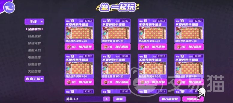 当然,你除了可以自己开房间以外,同时也可以选择加入到别人的房间里面,只需要输入房间号就可以进入了,这样子我们就可以加入到朋友创建的房间里面,和他一起玩耍。在正式开始战斗前,我们需要准备完成,在房间中你们也可以聊天互动,并且自由更换关卡,玩你们想要玩的内容。