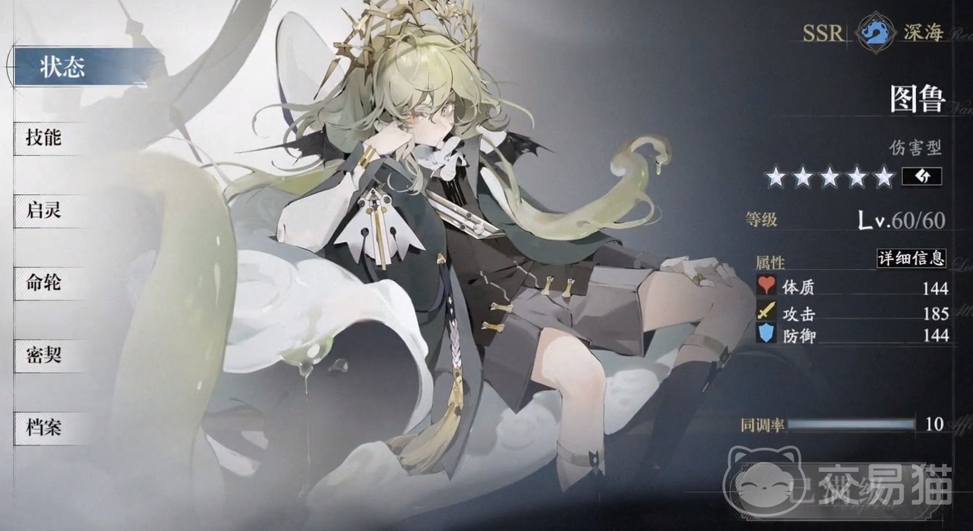 接下来给大家带来的便是我们的正太克总图鲁,作为游戏当中人气颇高的角色之一,图鲁,主要依靠着触手对敌人进行攻击和伤害。是深海当中最好用的输出角色之一,可惜稀有度过高,比较难抽到其他的,加上还是限定池,养成成本较大。