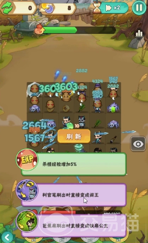 以图中技能为例,铁扇公主是一个这个时期非常不错的角色,他能给我们刷出一个相当好用的技能芭蕉扇,刷出的时候可以直接变成铁扇公主。简单来说,就是直接减少了我们芭蕉扇的格子,让我们的所有芭蕉扇直接变为铁扇公主,方便我们更好的进行三消。这种容错量的改变,能够有效的增加我们的节奏,提升游戏的进程。