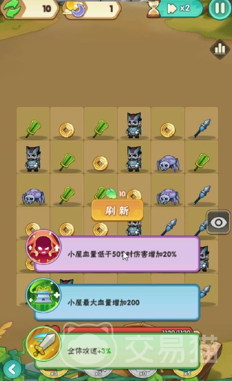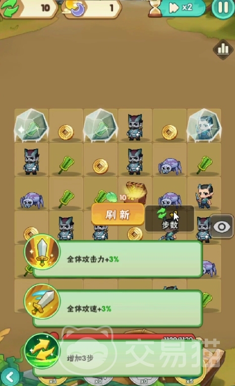 如果我们没有刷到这种关键性加成属性的技能的话,那么可以优先来选择增加部署。有些时候运气不好,刷新得到的技能只是一些加3%攻击或者攻速的技能的话,不是很推荐进行选择。可以选择一些机制性的或者辅助性的技能,例如增加我们的步数,恢复我们的血量等等。