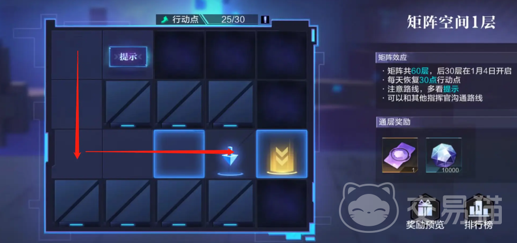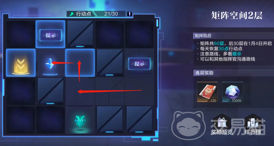 矩阵总共拥有60层,在进行探索的时候都会拥有着体力限制,如果体力点用完,那么就只能等待恢复才可以。每天会为玩家恢复30点的行动点,在进行探索的时候,玩家一定要多加注意路线,系统或许会基于一些提示,只需要根据提示进行操作就可以了。除此之外,还可以与其他的指挥家进行路线方面的沟通。毕竟人多力量大,通过沟通还能够快速的闯过关卡。