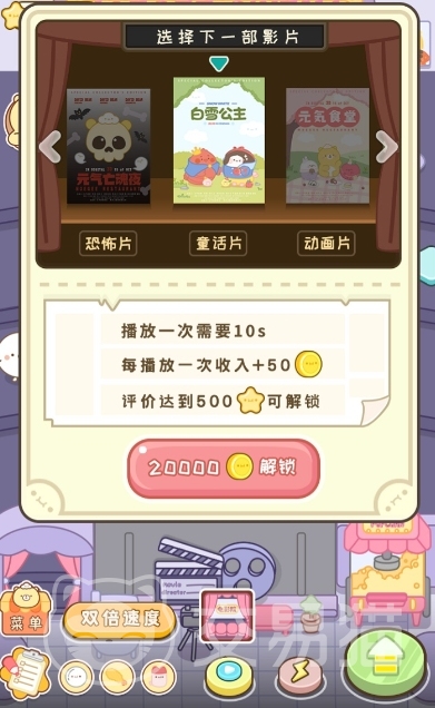 恰好游戏内的场景也是十分丰富的,有电影院,按摩院,乐园和美容院等等,在这些场景设施中,你可以看到食物丁们进入后所发生的的变化,熊大卫在进到这些场景以后,也会扮演不一样的角色来与食物丁们进行互动。