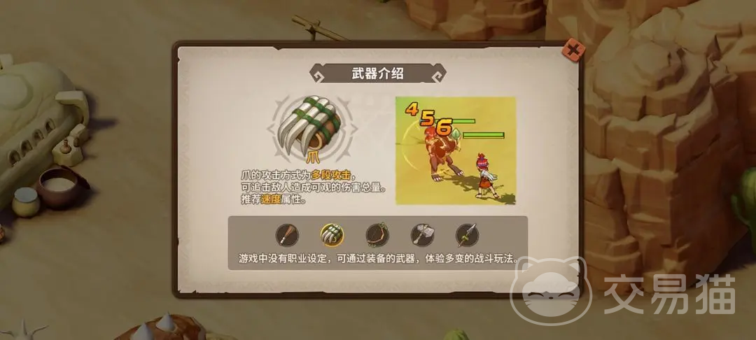 那么适合攻人使用的武器有比如斧子,弓箭,还有爪这三种。这些武器的伤害和特点是比较适合角色使用的,这些也有一个综合的分析可以看一下,比如说如果想打出高爆发的话,那么就选择斧,这种武器可以将攻击力的基础属性进行大量的提升,从而对对手造成额外的损伤,但是带来的损失就是敏捷度降低,而且一次只能对一个对手攻击,可以在对战单人的时候使用。