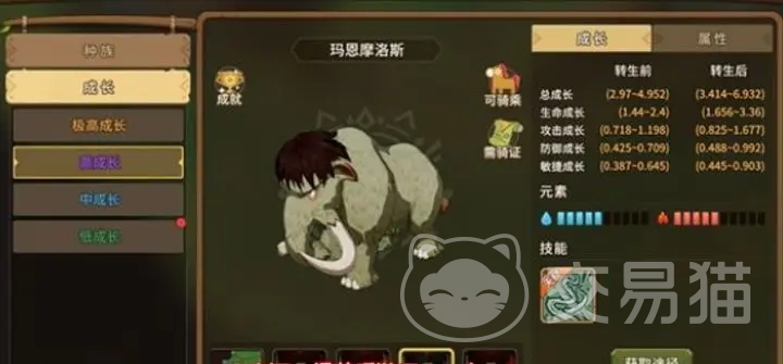 玛恩摩洛斯的外形看起来像是一只犀牛的样子,非常的强壮,确实他也是一个非常强大的宠物了,首先它的生命力是非常高的,血量非常的后,最高的时候能有2.4,可以将它理解为一个防御型的宠物,如果大家选择它共同作战的话,那么能够将自己所选角色的承受能力得到显著的增强,可以在战斗的时候有效的将主人受到的伤害进行分担,从而增强主人的存货能力。