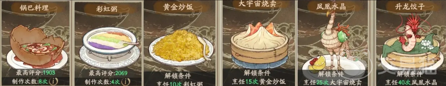在经营当中,一般情况下,总共有六道不同的菜谱。每一道菜谱,我们的熟练度够高之后才能解锁下一道菜谱。解锁等级越高的菜谱。那么,根据这个菜谱制作出来的最后的料理,它的评分加成也会越高。
