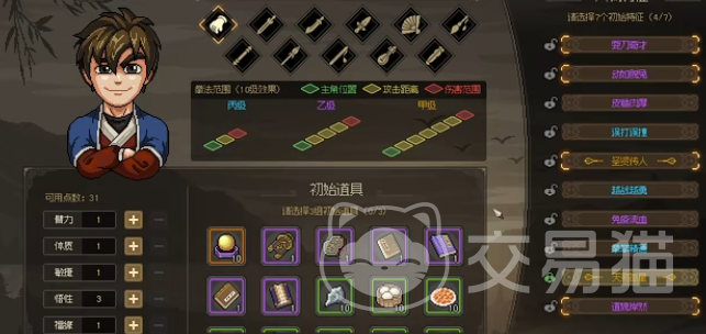 建议可以选择天煞孤星+万里独行,剑,这一方面就没有太多的限制性,比如可以选择加满敏捷,但是福缘这一方面就不需要考虑其他的,就没有固定的选择。如果想要提升个人的实力,也可以增加一些悟性,当在探索过程中可能就会提升个人的实力。当玩家在一开始操作时,会觉得有一些磨叽,但不要过于的忽视目标,就在于把所有的门派全部都加一遍,然后走遍每一个都可以走的地方,在这一方面就没有什么需要注意的地方,总之玩家就需要把所有的成就全部的走一遍,基本上就可以白白的得到许多的成就。
