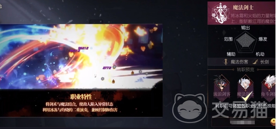 但是如果大家不选择转职成为流浪剑客的话,其实就选择魔法剑士也是非常不错的,这个职业更偏向于大面积伤害,在战斗体验效果上面也会更加有意思,而且在战斗过程中其实主要是依靠控制类的效果带来更多的输出,本身这个职业也是有一定的魔法伤害的,而且在负面影响上面的效果也很适合拿去施加给对面,有冰冻以及燃烧的两种效果可以根据技能来释放哦。。