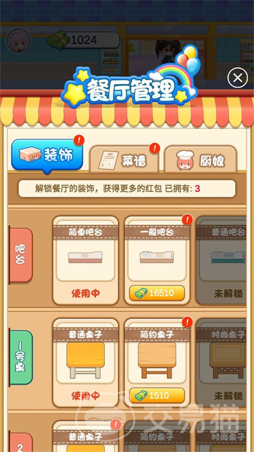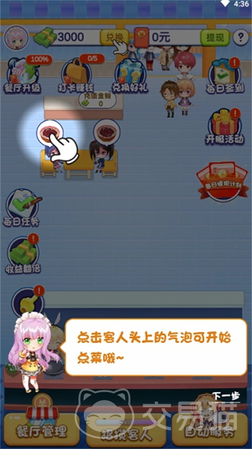 做菜:玩家可以在酒家经营中消耗体力,合成各种食材,从而做出一道道美味的菜肴。每做出一道菜,就可以获得一定的积分,积分可以用来兑换厨具或其他奖励。做菜的技巧是:尽量合成高等级的食材,这样可以节省体力,提高效率,也可以获得更高的评分。