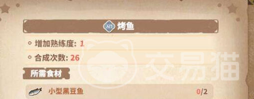 烤鱼:小型黑豆鱼x2 烤架 入门熟练度;