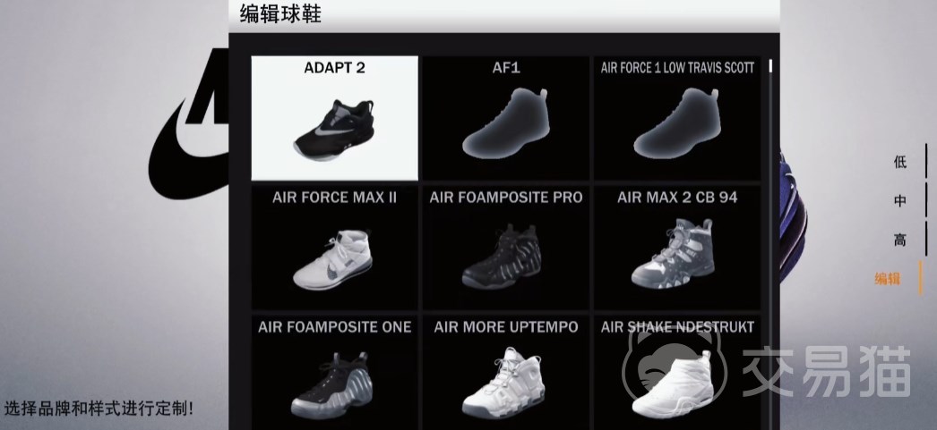 种类与样式有限,想获得更好的球鞋或者休闲鞋的话,就得自己动手去自定义了。从首页的“功能”进入,找到最右下角的“球鞋创建器”,在这里便可以选择品牌和样式来进行定制,还能选低帮、中帮、高帮不同的球鞋,或者自己去调整高度。