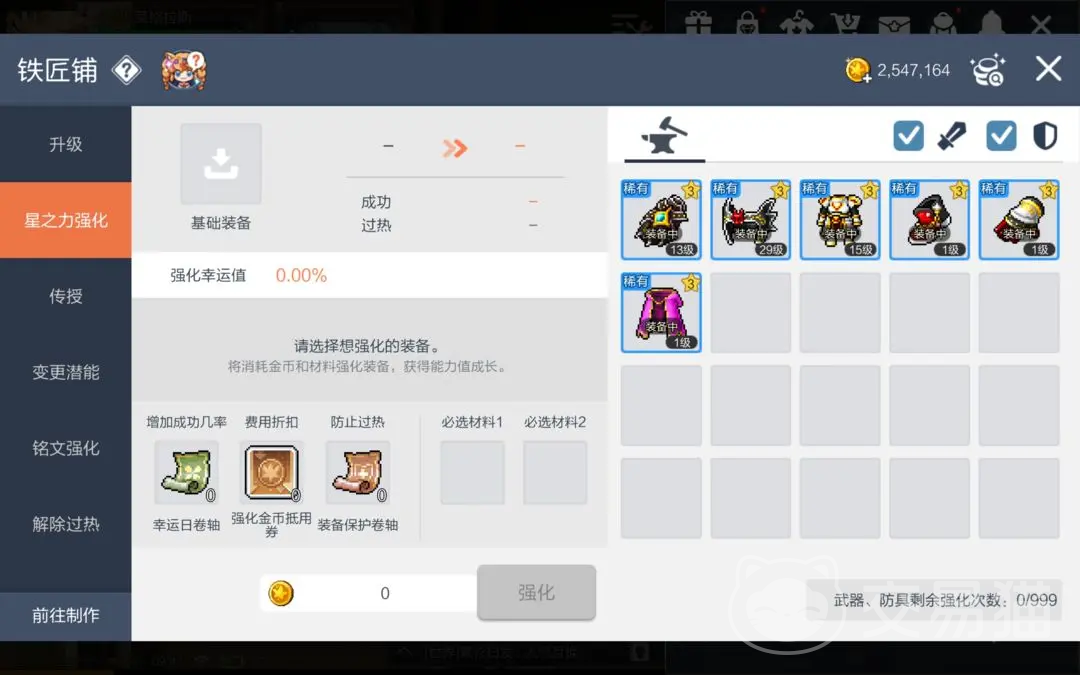 如果说装备的提升想必大家就不会觉得陌生了吧,在这个游戏当中对装备的提升其实是分为两个方面的,一个是装备的升级,另一个就是本文要说的星之力强化了,这是两个不一样的系统,装备升级主要就是将武器防具的等级提升,从而将装备属性进行加成。
