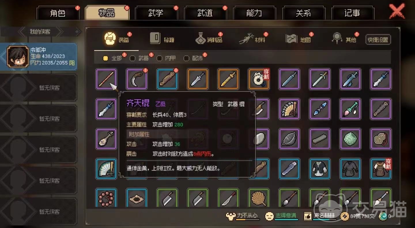 大侠立志传凶相毕露的乞丐打法介绍就为大家说到这,玩家若是缺一把好的棍类武器,可以找个机会去挑战一下恶乞丐,更何况该任务所需时长比较短,不会太耗费玩家的精力。