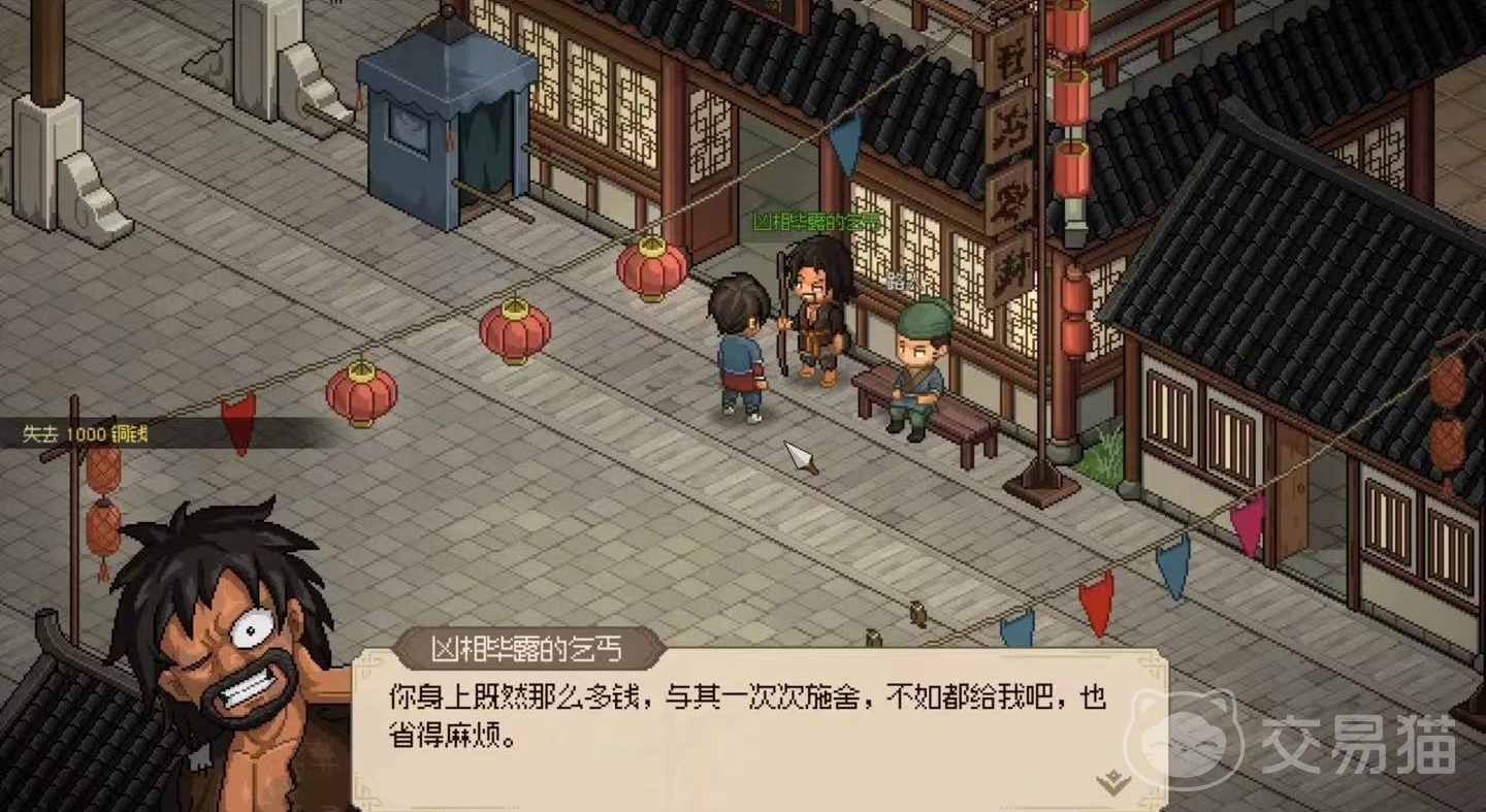 凶相毕露的乞丐的位置很好找,他会固定出现在大梁城浮云客栈门口,玩家只要来到附近就能看到他。与他交互后,会出现施舍钱财给他的选项,这时玩家需要选择施舍1000文,反复10次后就能触发与他进行对战斗的剧情。此外,在本次任务重玩家所消耗的银两是能叠加的,无论玩家是连续将1000文给他,还是分几次给,都会在第十次给完后触发剧情。