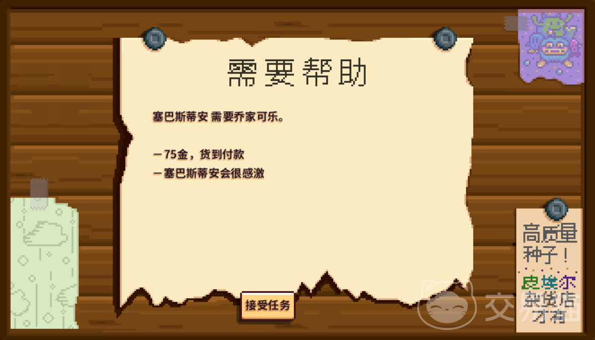 任务在前期尽量还是做一做,比如信件,布告栏,博物馆,社区中心等简单收集任务。这些任务可以让你获得一些前期资源。当然也能解锁一些新的地区,功能,事件等。比如,当你完成社区中心的所有任务后,你就可以修复巴士,去沙漠,岛屿等地方探索,找到更多的资源,怪物,NPC等。