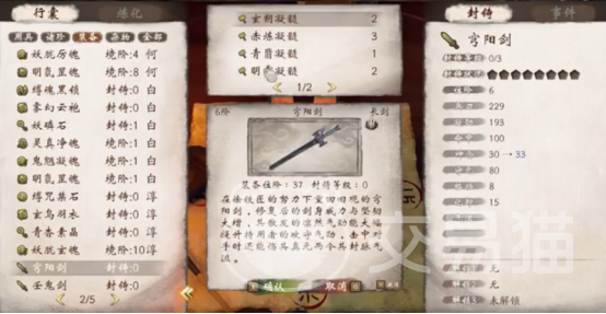 我们先来看一下铁剑,玩家可以选择8明,这时便会合成刚返,选择2名8赤,便可以合成神兵,除此之外,还能合成玄器。