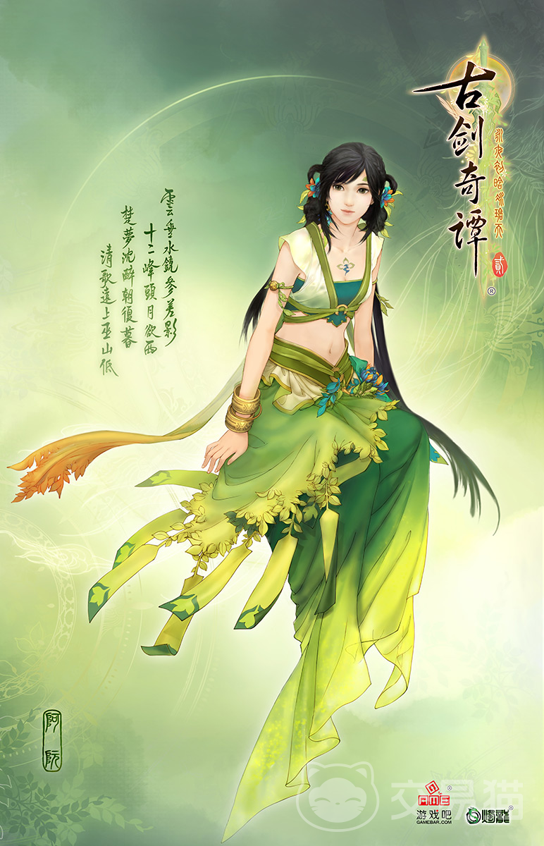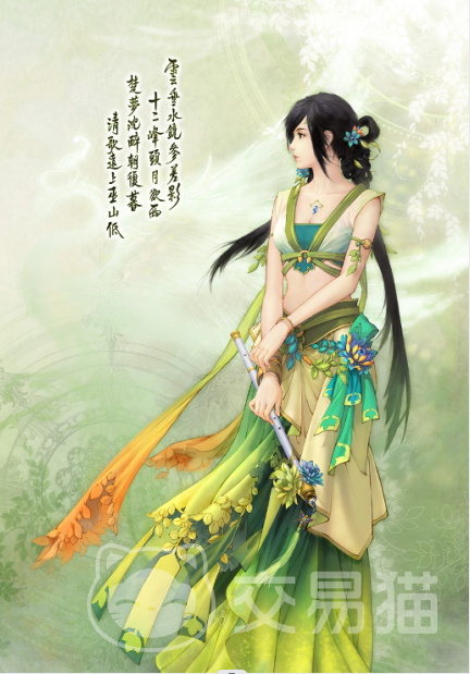 该角色从立绘看来外貌十分的柔美,性情是比较随性和灵动的,盛卓翠绿色的纱衣,有一种梦幻朦胧的美,好似山中不谙世事的精灵,人物整体色调都给人一种治愈的感觉,这是一个画中仙一般的女子。