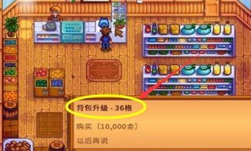 在游戏中背包最多可升到3级,1级的容量是12格,无需花费金币,2级容量是24格,升级需要花费2000金币,3级的容量的36格,升级需要花费10000金币,且所有升级都需要在皮埃尔的店内进行。