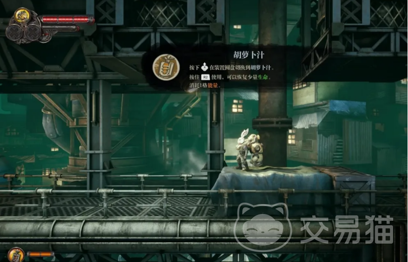 出来后,来到上班平台,再往左跳,上到另一个工厂,跟着箭头的指引,我们可以再次找到一个存钱罐,还记得之前那一招吧,砸破它就能爆出大量金币呢。然后就是这层的道路尽头,击杀完王手下的两个小怪后,我们可以到达最高点。这里是另一个存钱罐。走着走着,我们会发现王老实的房间,快点救他出来吧!跟他聊聊,说不定能获得武器变形钻的位置呢。然后呢,别忘了要得到王老实给我们准备的萝卜汁,这可是恢复生命值的好东西。
