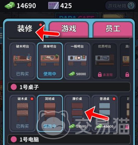 很多玩家也想要知道如何快速去购买桌子的流程,其实也非常的简单。首先进入游戏点击网吧管理,就会来到新的界面点击装修,就可以看到不同号数的家具,每一件都标明了价格,你可以选择合适的桌子进行购买。
