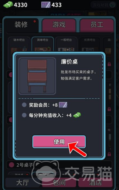 一般而言价格越高的桌子收益也会成正比,但是这类桌子不仅仅只有金币就可购买,还需要一些其他的达标条件。买完之后如果想要快速到货可以通过看视频加速送达,最后在装修界面点击购买的桌子再点击使用就可出现在网吧之中。