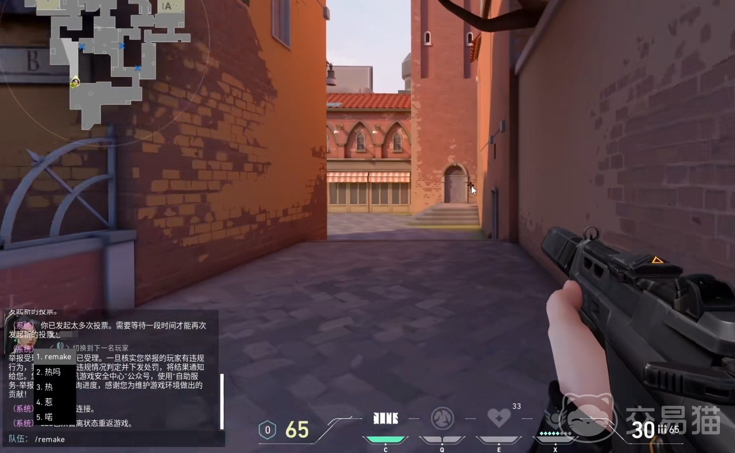 基本上有人挂机后很多萌新玩家都会打开esc发起投降投票,不过这种方式其实也是白白吃亏,因为投降会让你掉分,所以不如直接重开,毕竟重开是不会掉分的,操作也很简单,就只用像下图这样在聊天框输入“/remake”即可。