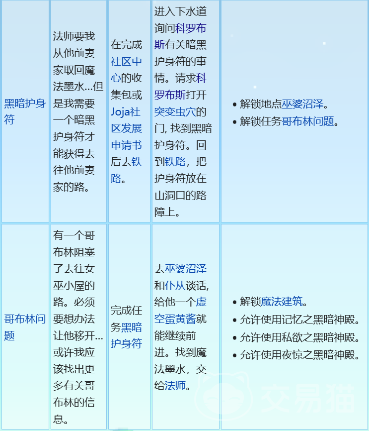 当你完成了社区中心或乔家超市的任务后,你需要去火车站的地图。在那里,你会遇到一位法师,他会告诉你他的前妻是一位女巫,她住在一个隐秘的沼泽里,他需要你帮他找回他丢失的魔法墨水。为了进入女巫的沼泽,你需要一个黑暗护身符,而这个护身符被藏在一个叫做突变虫穴的地方。