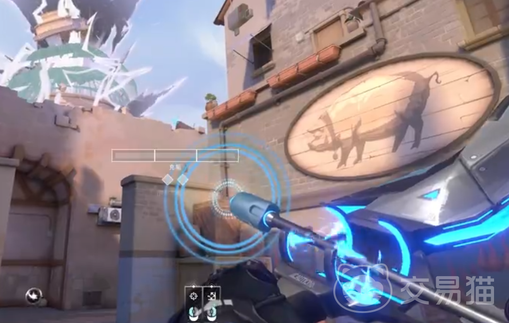 这里就从源工重阵开始,源工重阵这张图中猎枭的探测箭可以使用的点位有很多,首先是第一个位置在防守方浴室的左夹角,这里大家可以向上瞄准然后蓄力到半格的时候放出,放出后这根箭就能看到浴室中的全部信息了。