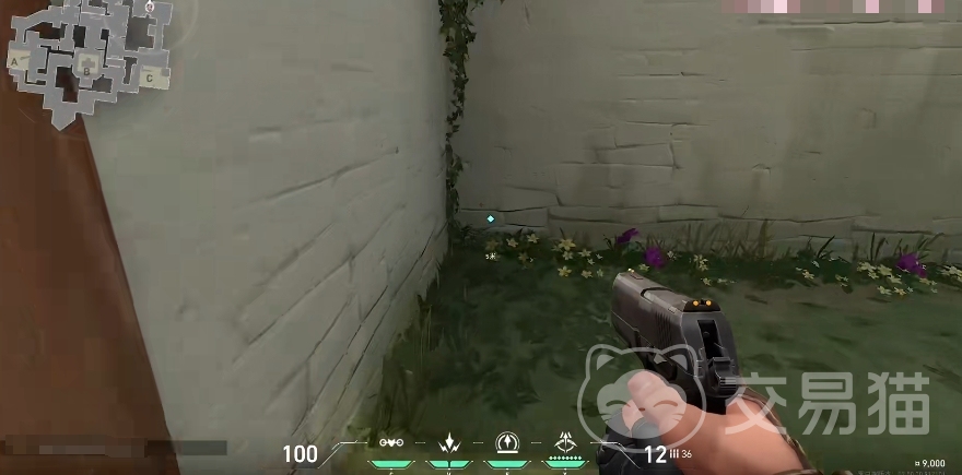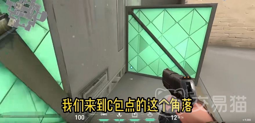 然后进攻方还有第四个点位,它的位置在C包上面那条过道的尽头处,你需要找到如下图所示的这个墙角,找到之后转身视角朝向上面。