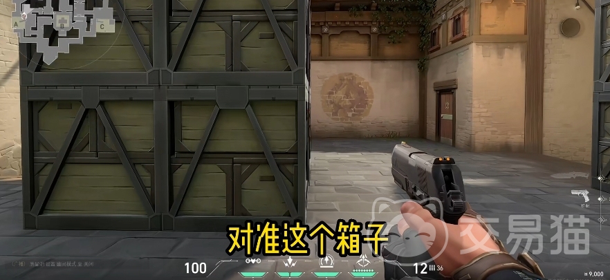 首先来介绍下防守方的两个点位,第一个点位在A包这里,防守A包的时候可以先找到如上图所示的这个箱子,然后确保自己屏幕的中间对准它,对准之后靠近到它的面前,之后拿出探测弓箭,然后瞄准天空中的太阳,当然,说是太阳,实际上只是天上的一个白色圆点。