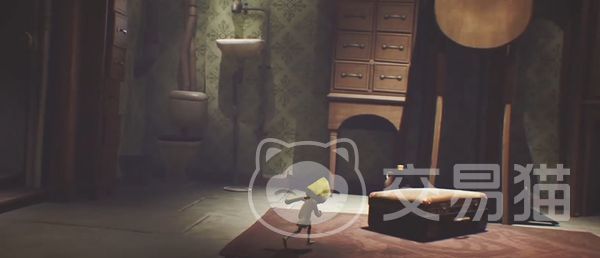 按下开关可以看到一个巨大的眼睛,能看到不同的画面,然后大家往前走,可以来到一个有行李箱的地方,将行李箱拖到开关的位置,将开关拉下来就可以将床给放下来,接着通过床往储物柜梯子上爬,来到最上面柜子拿到钥匙。