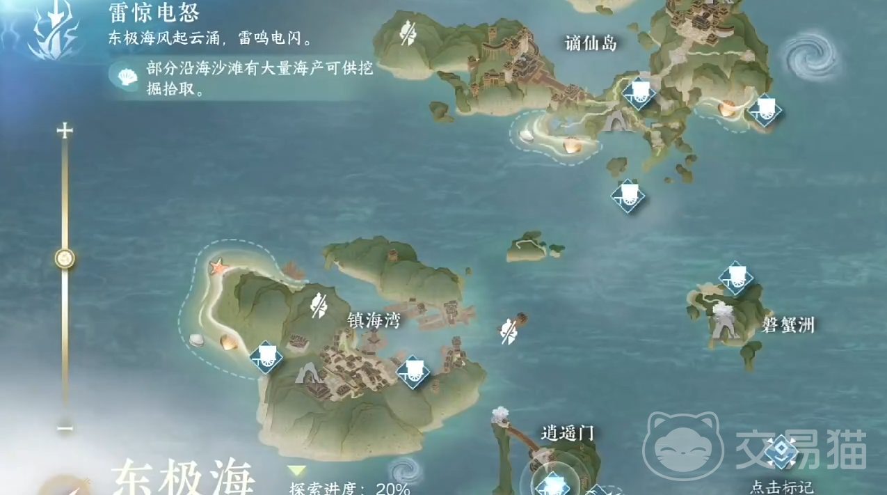 说到逍遥门的进入方法,首先大家需要先切到东极海这张地图上,在这张地图的右小角中间位置大家会看到一个叫做逍遥门的小岛,在这个小岛上有一个传送点大家可以直接传送到岛上。