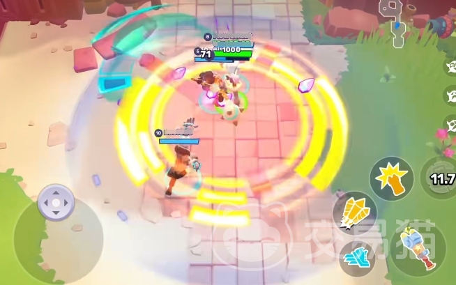第三类技能是多段输出技能,其中以初始角色大棒的飞弹最具代表性,使用后角色身上会飞出多颗流弹,并自动朝周围的敌人进行打击。